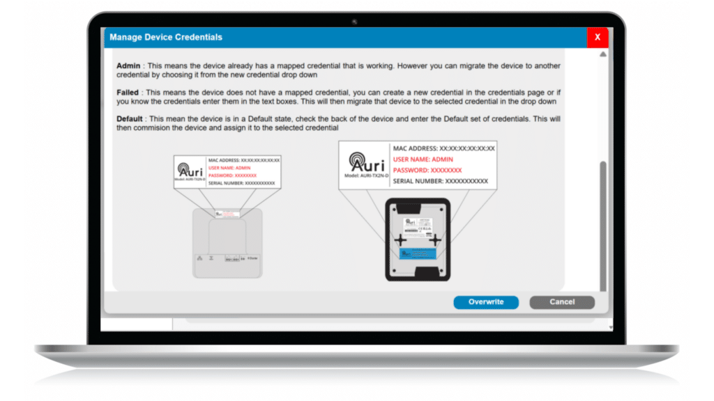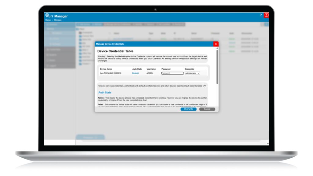The Auri Manager software application provides a user-friendly interface for discovery, management and configuration of all devices over the network.