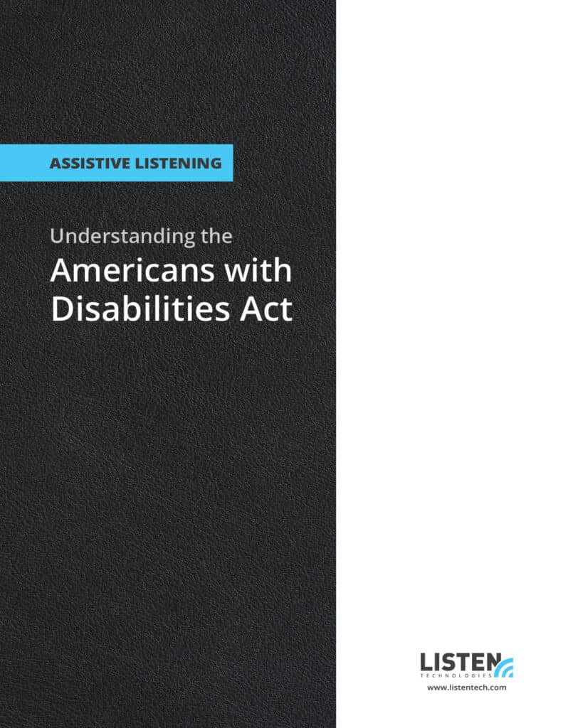 The Americans with Disabilities Act (ADA) prohibits businesses and agencies from discriminating on the basis of disability. The ADA also establishes requirements designed to ensure that accommodations are provided for individuals with hearing impairments. These accommodations include assistive listening systems, which are required in new construction, renovations, or anywhere a professional AV system is being installed or upgraded. Private companies, commercial facilities, and state or local government buildings, providing goods or services to the public are all required to make such accommodations.