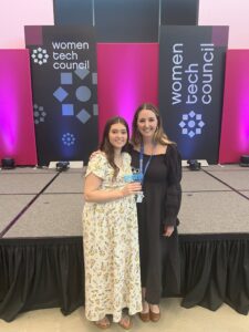 Photo: Raychel Stromberg and Korene Korologos from Listen Technologies hold an award recognizing Listen Technologies’ inclusion in the 2025 Shatter List on May 2, 2025, at the Women Tech Council Innovation Summit in Midvale, Utah.