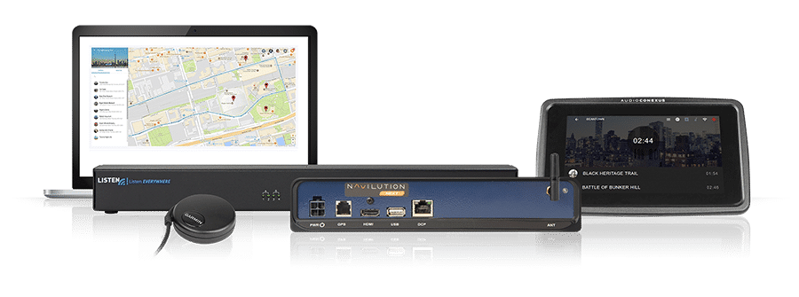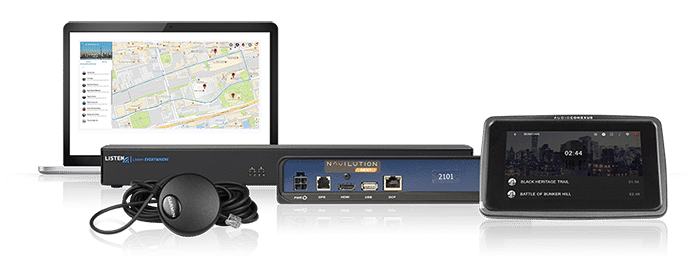 The Navilution Listen EVERYWHERE 4-CH System is a GPS triggered commentary system with 4 channels for simultaneous delivery of audio to passenger’s smartphones in different languages and topics.  The system can be expanded to 16 channels with additional hardware. Simple and safe, this system allows passengers to use their own iOS or Android smartphone to select a channel and adjust volume. After passengers download the free app, there is no internet required. And, the app can be customized to your brand. The system includes a display control panel and external GPS antenna/receiver for reliable GPS triggering.  Route planning, GPS triggers and tour development is simple and easy using Navilution Cortex, a proprietary cloud-based software tool. For audio tour development, there is basic, advanced and creative tour development training and Listen tour development partners that can help in the development of your audio tour. The system also supports video delivery to an onboard monitor to enhance passenger experience and can be used for ASL.